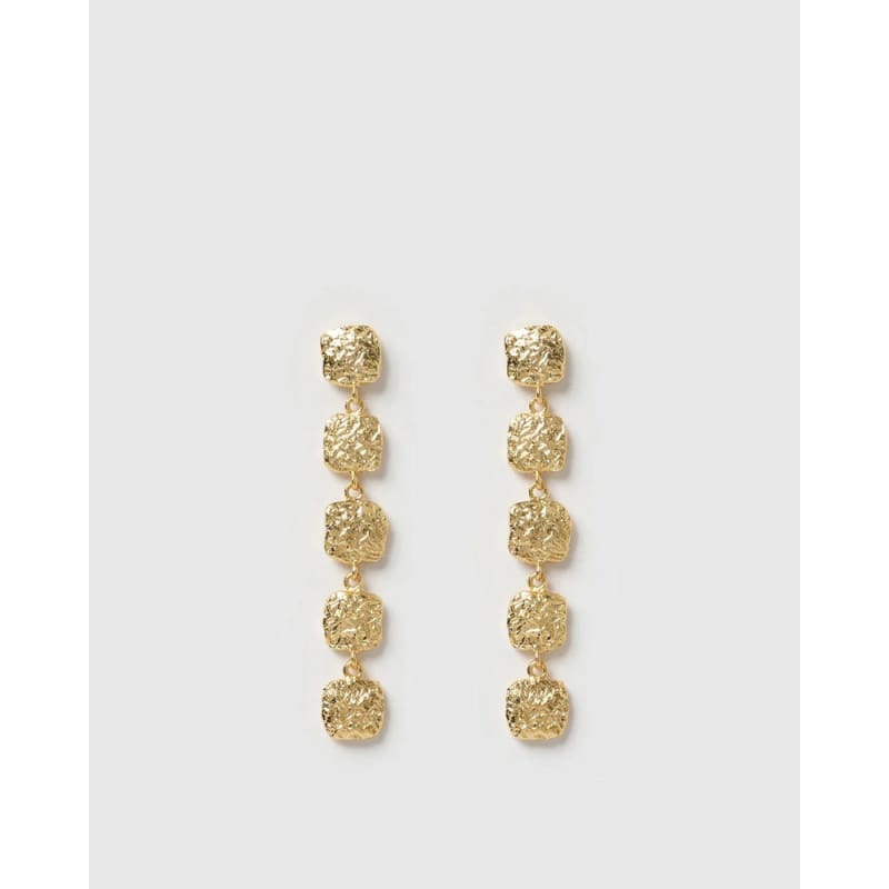 Glamour reaches new heights with our show-stopping Emilia Earrings. Featuring a long crushed gold drop, this striking pair is designed to turn heads and command attention.
