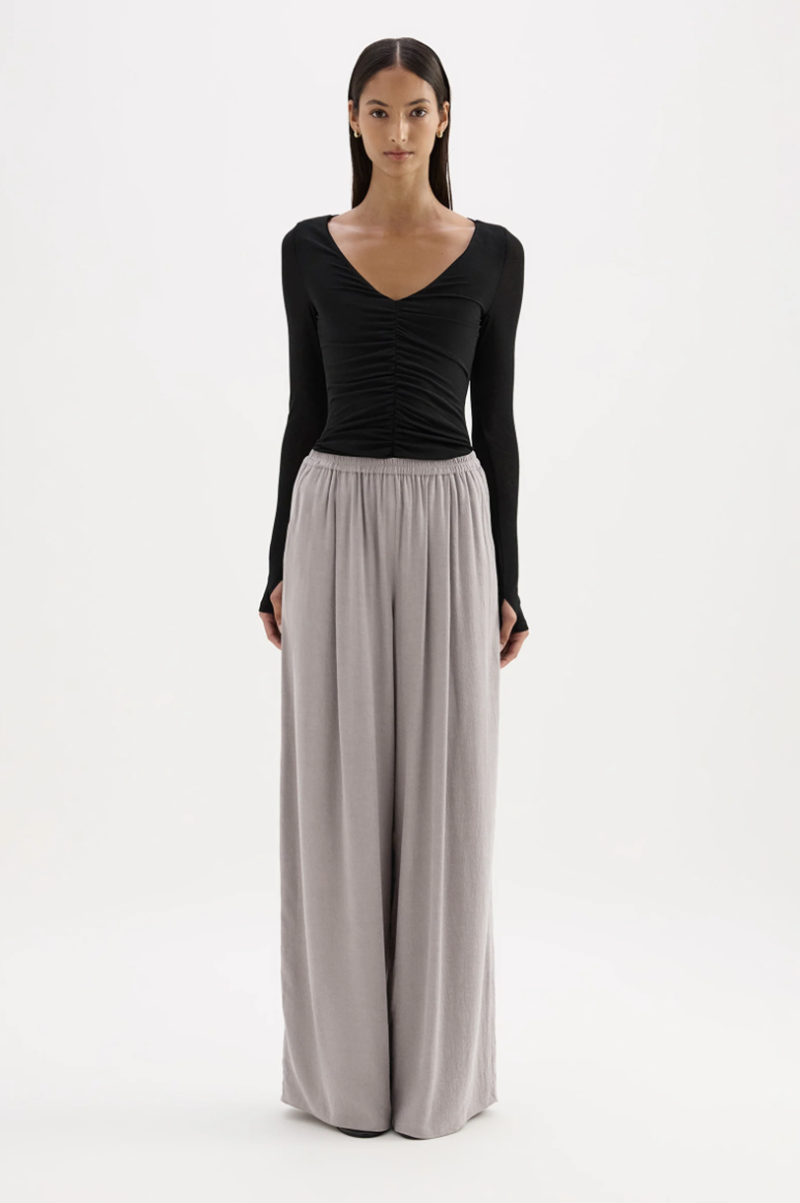 Petite Sloane Linen Viscose Wide Leg Pant With D-Ring Belt | Moonlit Batik