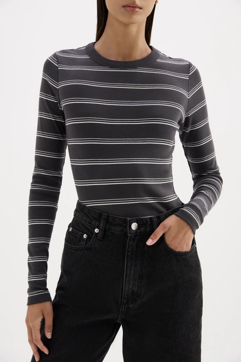 The Hero Stripe Raglan Tee | White & Chocolate C1214-56