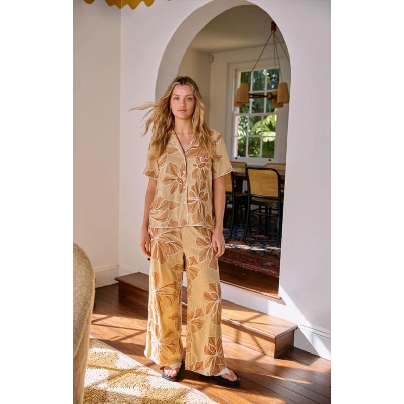 An effortless classic with a modern edge, this relaxed button-up features oversized floral embroidery, side splits and contrast piping. Crafted from a breathable viscose-linen blend, it’s perfect worn solo or teamed with the matching pants for the full set.
