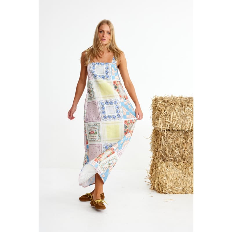 Bending Poles. For those not famil, its racing your ponies through a series of poles. Excellent. And just as cute simple good fun a sundress stitched with stories. Cut from 100% linen & patterned with a patchwork of daintiest vintage handkerchief designs. Cute as a cucumber. Scallop florals, sweet checks, cross stitched homespun charm. Removable shoulder straps, an elasticated back, deep side pockets keep it easy & unfussy, whether you’re leaning on the fence rail or festivals, footloose & fancy free. The kind of dress that says you’ve inherited both style & a trunkful of tales.