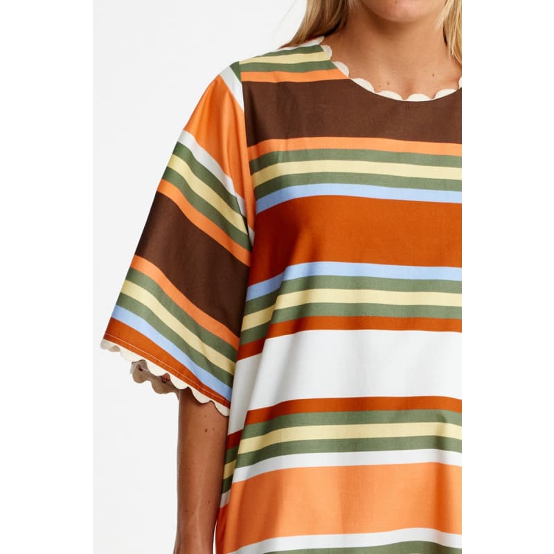 THOROUGHBRED. Born to run. Out the door. One of our best sellers is back better than ever. Crispiest 100% cotton poplin, this maxi shift dress combines bold, beachside stripes with ye olde Binny favourite ric rac trim. Side splits and pockets keep it practical, while the belt lets you pull yourself together. Into a more tailored silhouette. A guaranteed photo finish. Winner takes all.