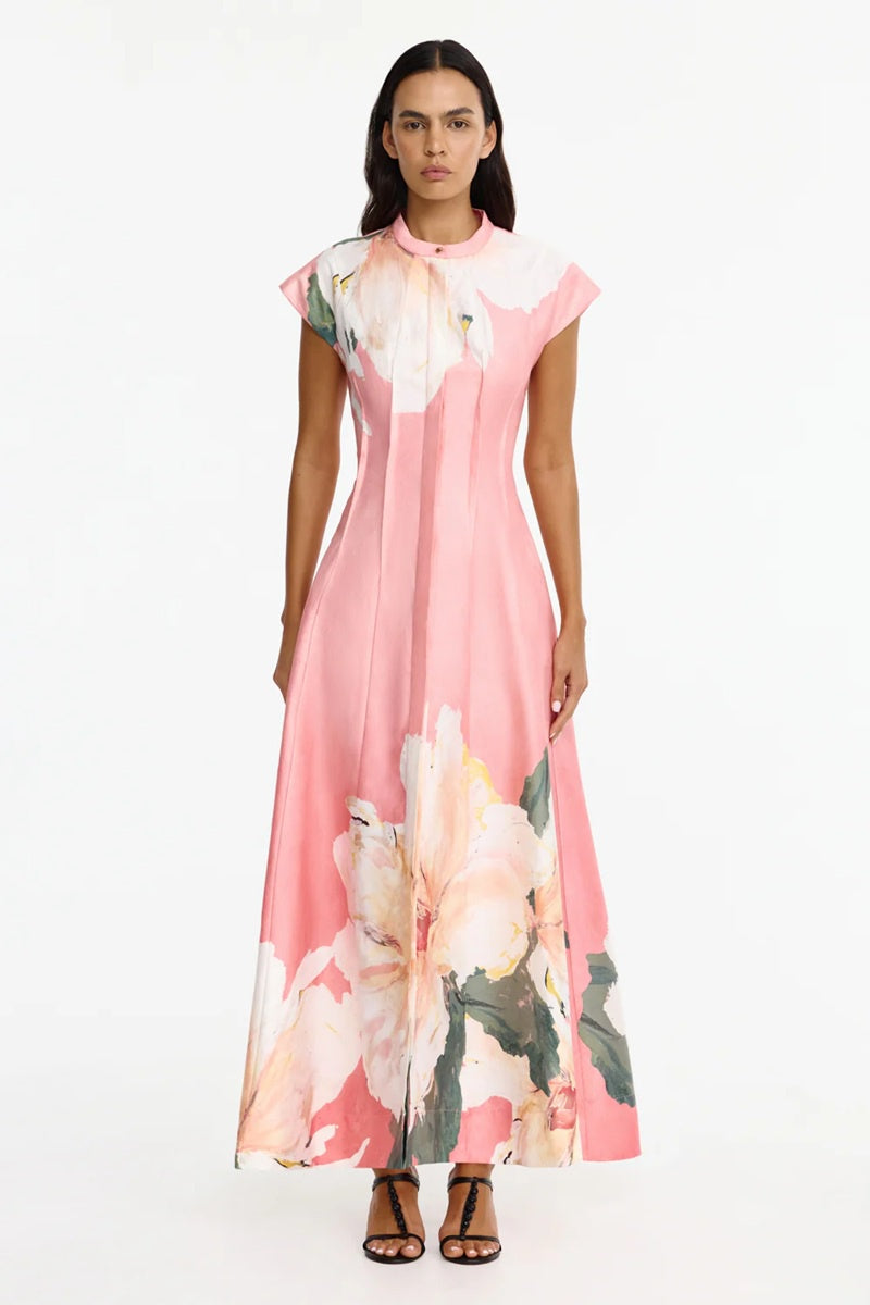 Camille Viscose Faille Curved Hem Dress | Tangled Blossom