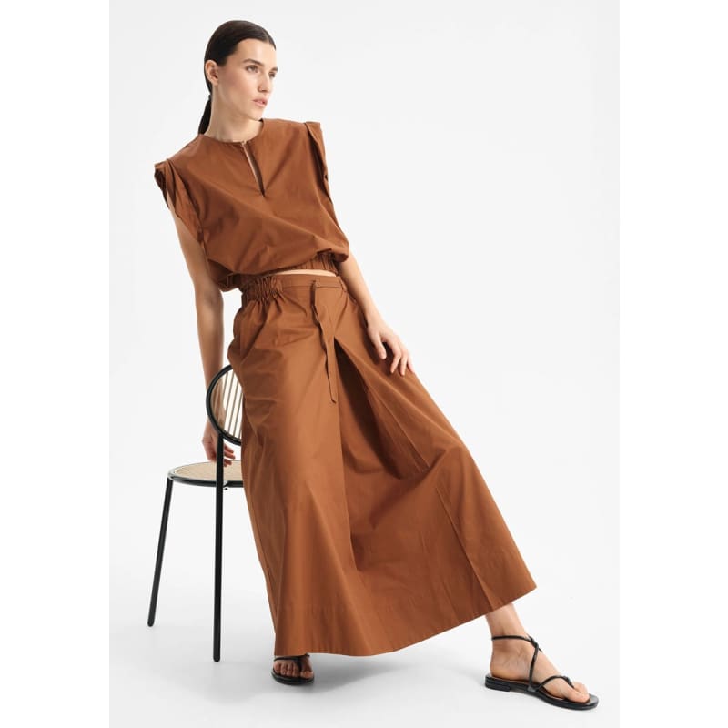 The Brooks Top combines contemporary detailing with classic tailoring. Crafted from smooth cotton poplin, it features a round neckline, button keyhole opening, and twist cuffs for a refined touch. The elasticised hem brings gentle structure to the relaxed body fit, perfect for easy, elevated dressing.