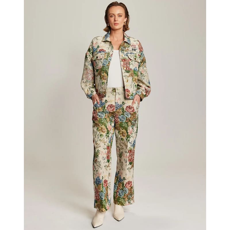 Noelle Rose Red Jacquard Woven Jacket with two packets in the front.