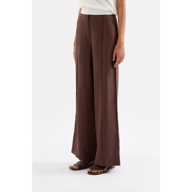 The Theo Linen Pant is made from 100% linen and has been washed for a breathable, soft hand feel. This linen pant has a high-rise fit and wide leg silhouette. It features tailoring details, fly front opening, side seam pockets, pin tucks down centre of legs and a clean finish waist.