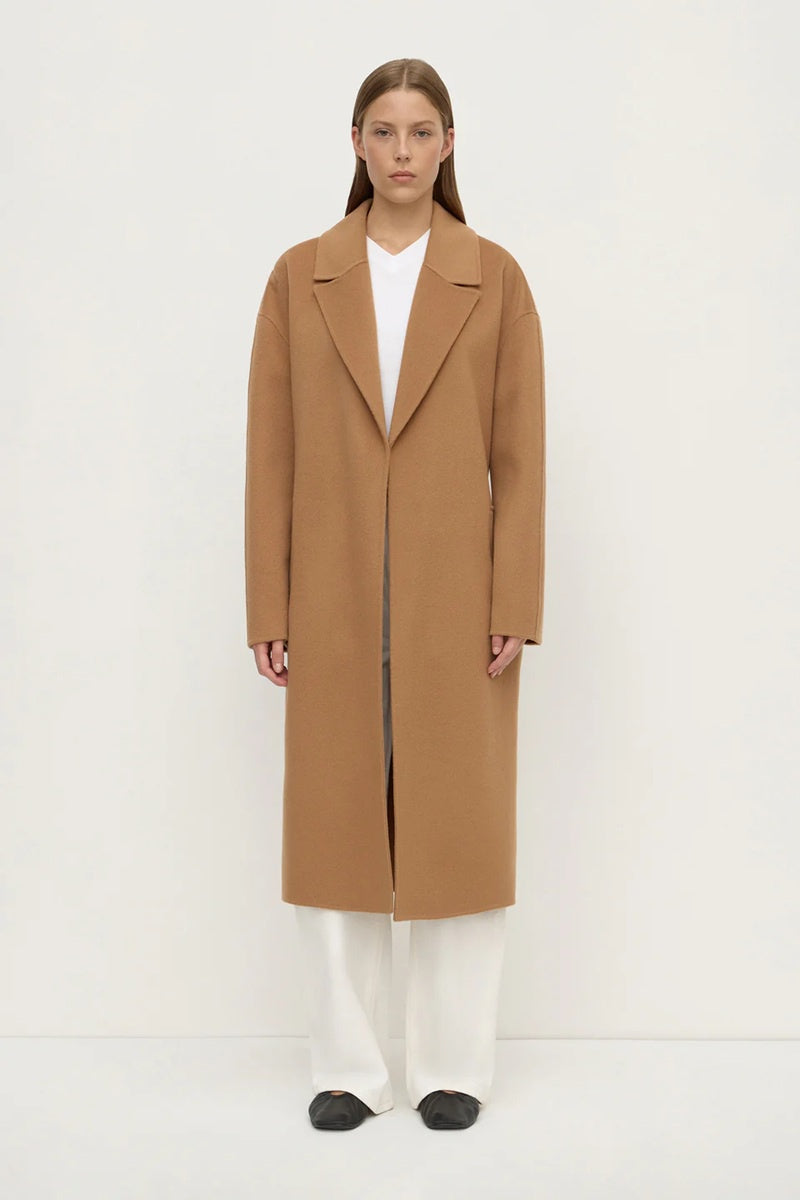 The Ivy Wool Coat in Camel, an updated version of our best-selling Sadie Coat, features a slightly longer length for added coverage, as well as side seam welt pockets and a long detachable belt.