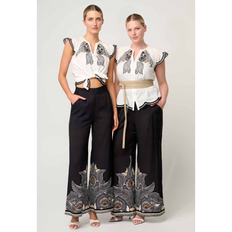 Made from lightweight, breathable cotton, this beautifully structured blouse showcases intricate embroidery across the chest, inspired by hand-drawn botanical motifs from the Casablanca collection. The flutter sleeves add a soft romantic touch, while the scalloped hemline and contrast detailing create a flattering silhouette that accentuates the waist when paired with your favourite belt.
