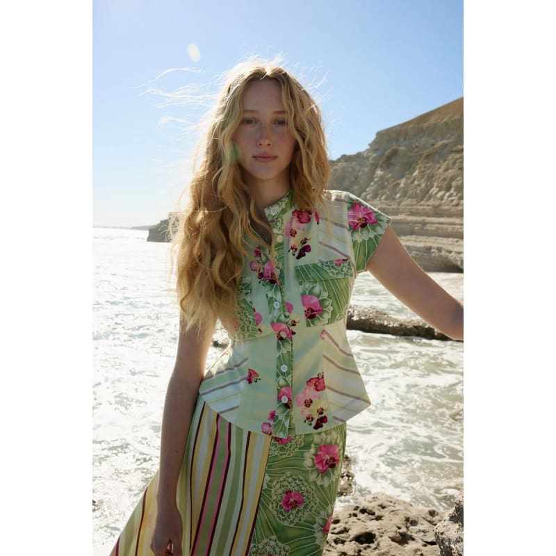 The Tilla Denim Top Meadow Multi redefines denim with handcrafted floral and striped panels. Wear it with the Tilla Denim Maxi Skirt for a coordinated denim look that’s equal part modern and timeless.